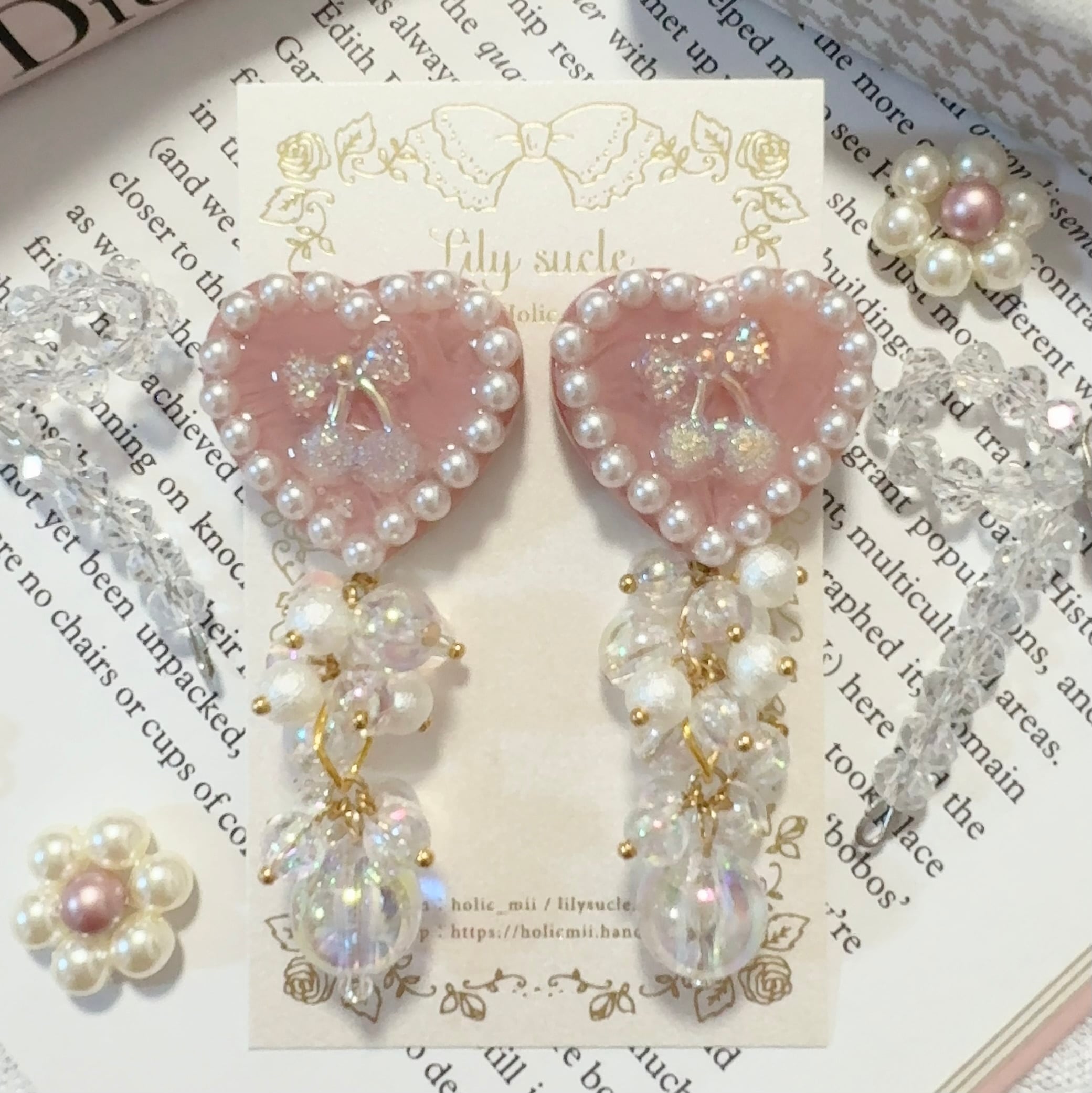 Holic mii ピアス ヴィンテージ ヴィンテージピアス ハートピアス ビジュー リボン リボンピアス ビジューピアス ビジューイヤリング リボンイヤリング おおぶりピアス フラワーピアス フラワーイヤリング フラワー お花ピアス お花イヤリング イヤリング パールピアス パールイヤリング パール ハートイヤリング 推し活 ピンク さくらんぼ チェリー
