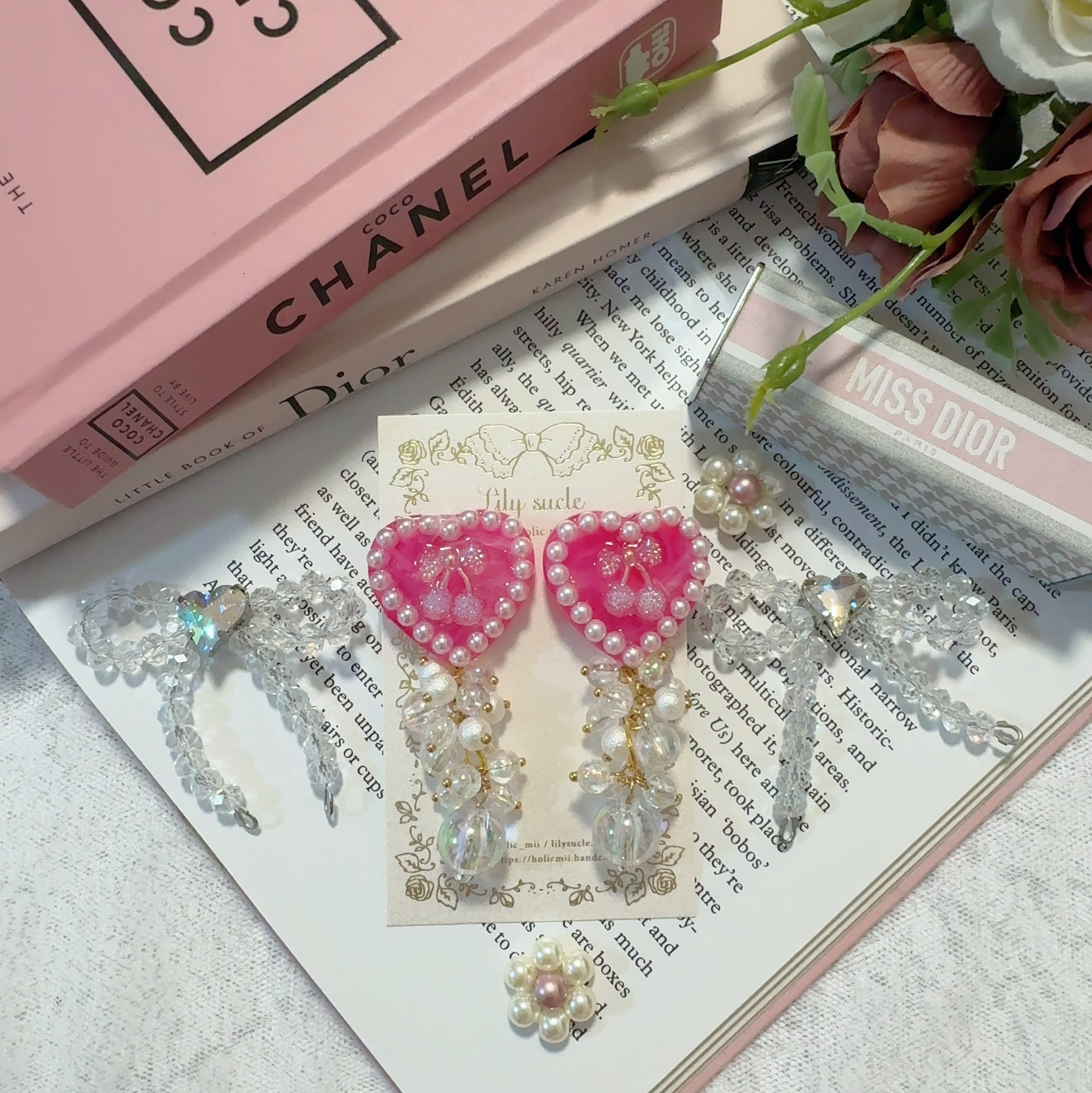Holic mii ピアス ヴィンテージ ヴィンテージピアス ハートピアス ビジュー リボン リボンピアス ビジューピアス ビジューイヤリング リボンイヤリング おおぶりピアス フラワーピアス フラワーイヤリング フラワー お花ピアス お花イヤリング イヤリング パールピアス パールイヤリング パール ハートイヤリング 推し活 ピンク さくらんぼ チェリー